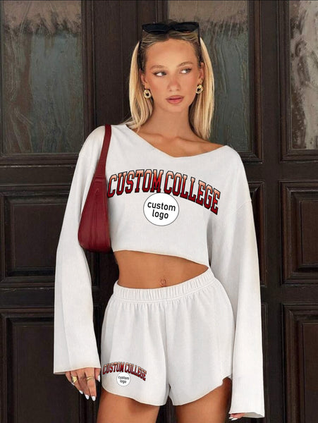 Super soft v-neck sweater with matching shorts. Top features a wide sleeve design and neckline that can be worn off the shoulder.2 (XS)4 (S)6 (M)8/10 (L)