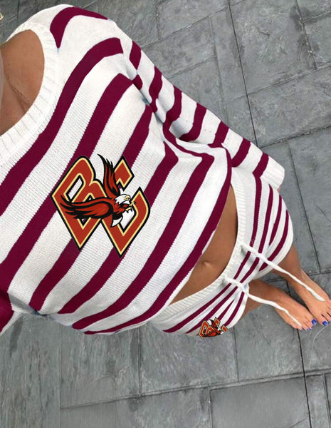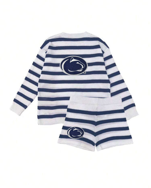 This light weight knit set will be customized with your school logo/mascot or custom design.
