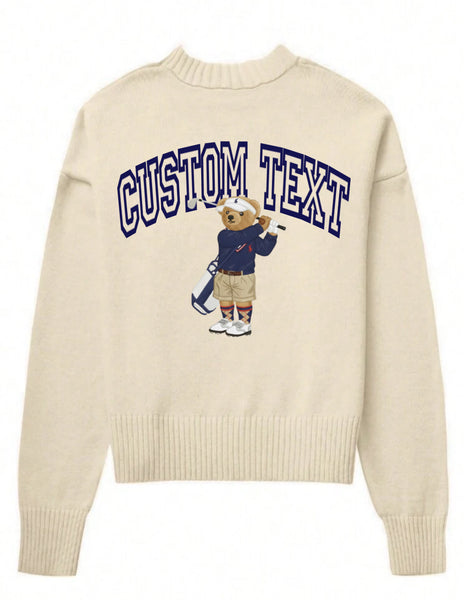 Knit Pullover sweater.Each crewneck is customized with your custom text and a bear wearing your unique colors centered under the custom text.